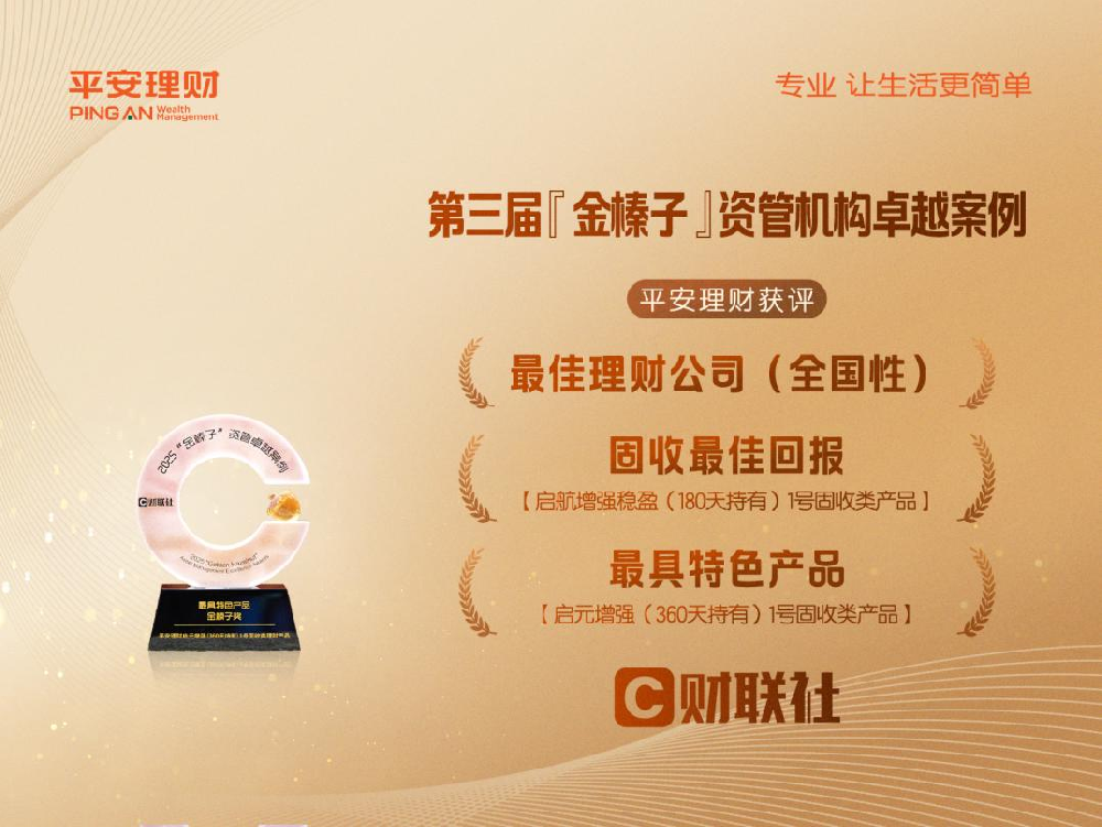 凭借在产品业绩、投研能力、科技研发等方面的优异表现与竞争优势,平安理财获颁“最佳理财公司(全国性)”金榛子奖、2025年银行理财公司“拓扑奖”和2025年数字金融机构“拓扑奖”,充分彰显了行业对于平安理财资产管理能力和经营成果的充分肯定,更是对公司服务实体经济高质量发展、积极践行“金融为民”理念的高度认可。