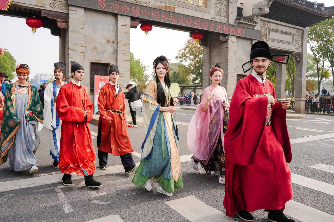 这场盛会也吸引了“国际视角”关注。汉服周期间,乌克兰博主达利雅身着粉色唐装亮相朝代嘉年华;意大利摄影师Isak,来到中国首站就选择打卡西塘汉服文化周。他把古镇比作“东方威尼斯”,还在自己的社交平台发布拍下的汉服绝美瞬间……国际面孔的频繁出现,印证了东方美学正成为跨越国界的“语言”。